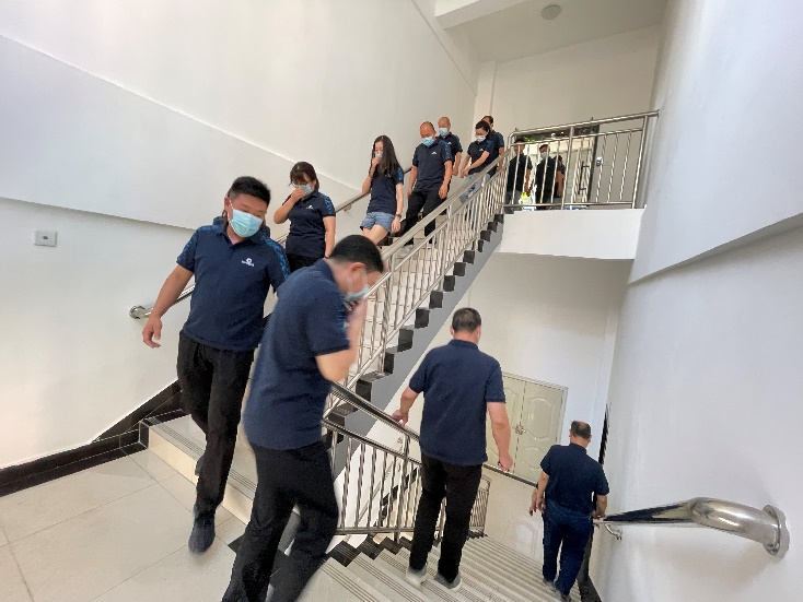 下午5點(diǎn),隨著總指揮陳總的一聲令下,警報拉響,消防安全演習(xí)正式開始。